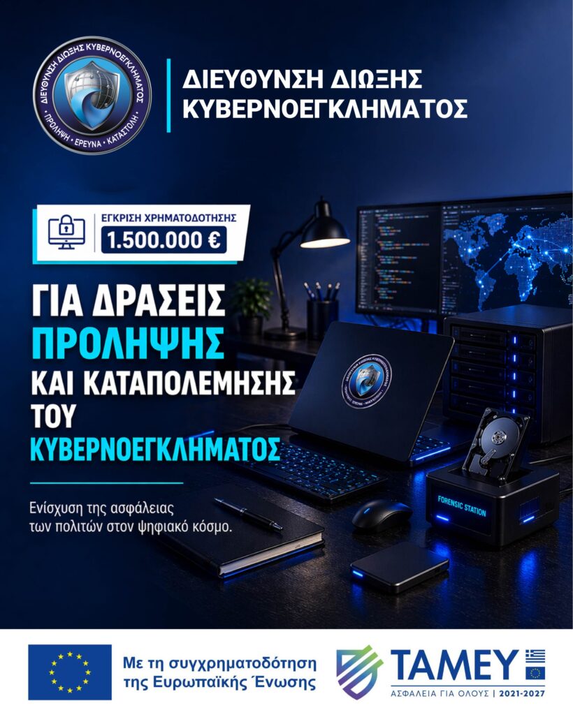 Έγκριση χρηματοδότησης 1.500.000 € από το Ταμείο Εσωτερικής Ασφάλειας (ΤΑΜΕΥ) για δράσεις πρόληψης και καταπολέμησης του κυβερνοεγκλήματος